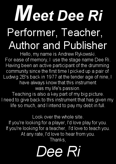 *Officially opened "The Dee Ri Institute of Drums and Percussion" September 2004